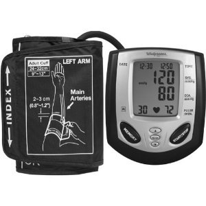Easy to Read LCD DisplayProduct InformationBy monitoring at home you can manage your health between doctor visits. Home monitoring also provides you with a record of blood pressure measurements over time to give to your doctor - a valuable tool in monitoring hypertension. The Healthy Living Deluxe Automatic Inflate Blood Pressure/Pulse Monitor is brought to you as part of the healthy Living line of products. The home blood pressure monitor has been developed to make staying healthy easy; which is just the beginning to living a healthy life.The deluxe monitor with Heart Sense measures blood pressure and pulse quickly and conveniently. The monitor's Heart Sense system knows the exact inflation level necessary. The monitor features a large digital display and memory storage of up to 90 readings.Product FeaturesLarge Three Row digital Display3 Zones of 30 Memory - 90 Memory TotalOne Touch OperationDigital Display Symbols Month/DayHour/MinuteInflateSystolic DisplayDiastolic DisplayPulse DisplayMemory DisplayMeasuring Symbol (flashes during measurement)Large DisplayMemory Average of last 3 MeasurementsAC Capability and AdapterTwo Year Limited Manufacture WarrantyProduct Specification Monitor Type: Deluxe Automatic InflateMeasurement Method: OscillometricDisplay: Liquid crystal digital displayMeasurement Range: Pressure: 0-260 mm HgPulse: 40-199 beats/MinuteMemory: Stores up to 30 measurements for each zone (90 memory total)Automatic Power Off: About 1 minute after measurement is completeBattery Type: 4 'AA' Batteries (Alkaline)Battery Life: About 6 months when used once a day less when using a large cuffStorage Temperature: Temperature: -4F to 140FRelative Humidity: less than 95%Operating Temperature: Temperature: -50F to 104FRelative Humidity: less than 95%Dimensions (approx.): Monitor: 4 3/4" x 5 1/8" x 2 7/8Available at Amazon Check Price Now!